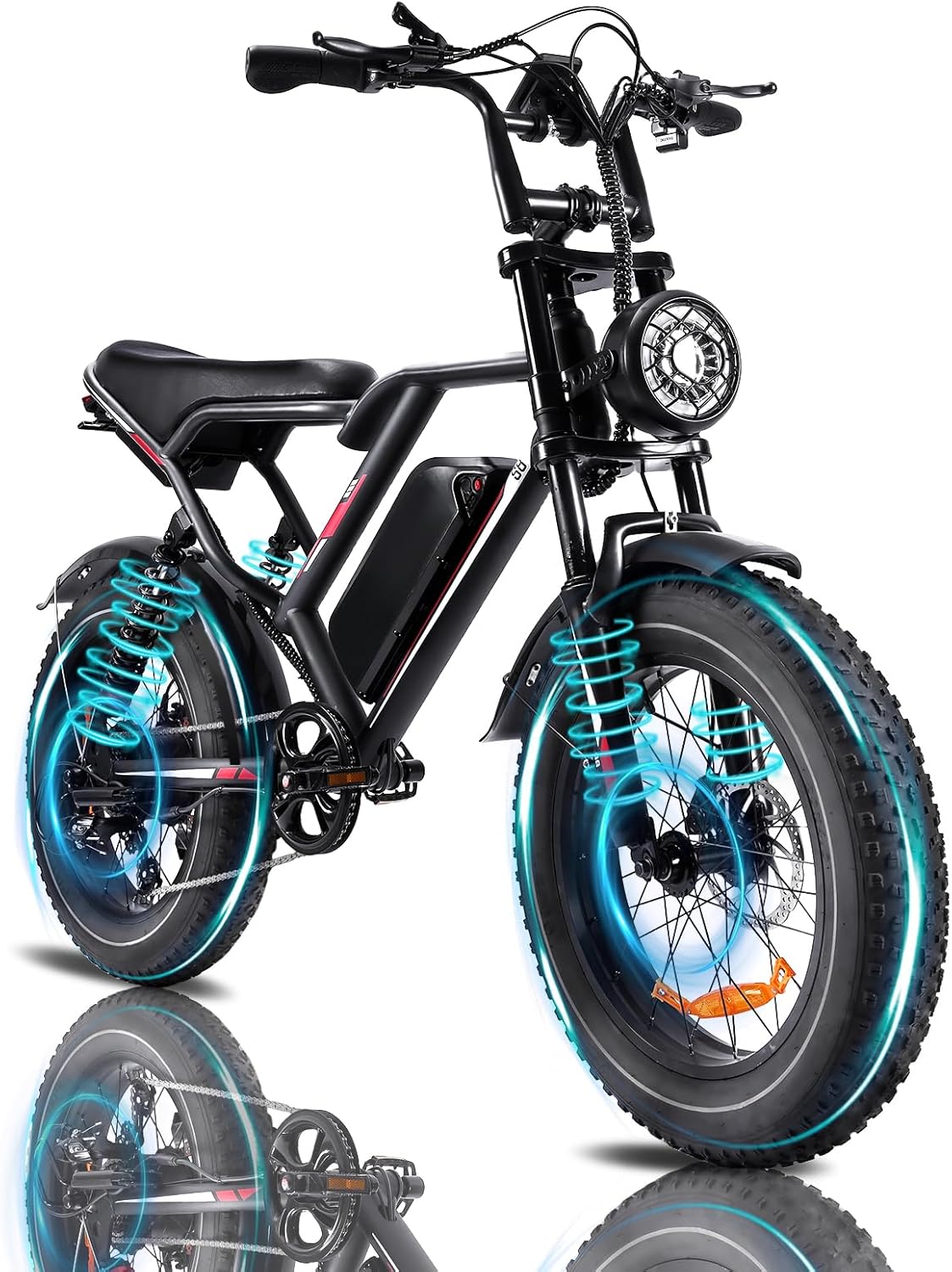 YVY Vélo Électrique 20" 20/40Ah 7 Vitesses 120-300km Double Suspension Noir